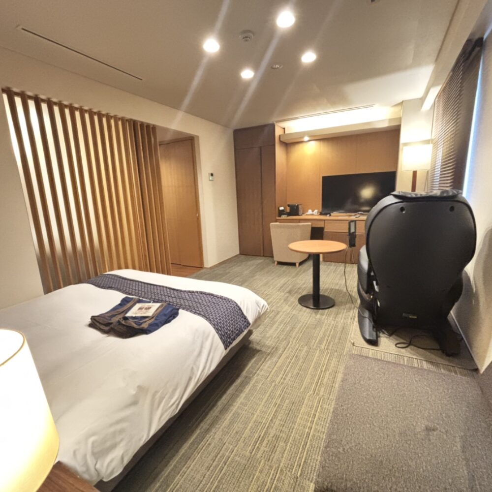 無料のマッサージチェアと50インチのネット動画対応TVを完備しております。
