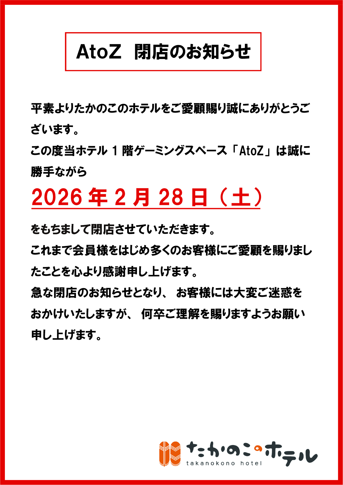 AtoZ閉店のお知らせ