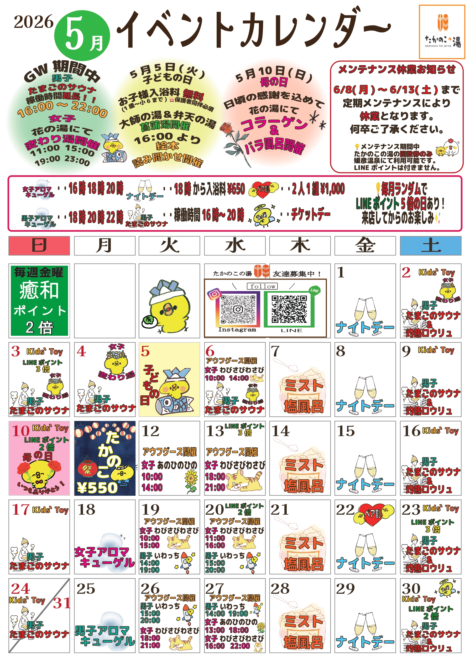 日々の疲れを癒しに、ぜひたかのこの湯へお越しください♨